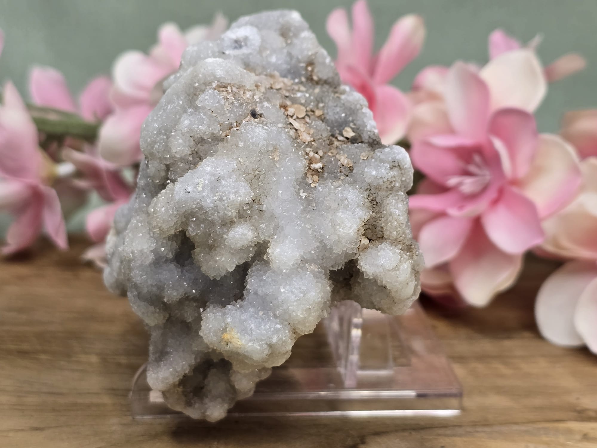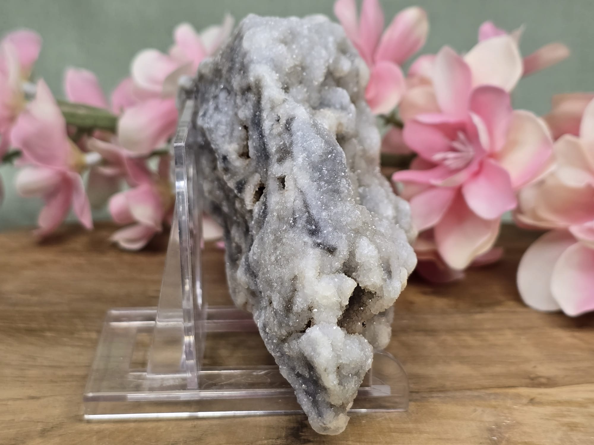 Chalcedoon, en dan met name de blauwe variant, staat bekend als de “steen van de spreker”. Het is een zachte, kalmerende steen die de verbinding tussen je hart en je stem versterkt. Het helpt je om je gedachten helder te formuleren en met tact en mededogen te communiceren. Daarnaast absorbeert het negatieve energie en brengt het lichaam, geest en ziel in harmonie, waardoor gevoelens van vijandigheid of stress verdwijnen.