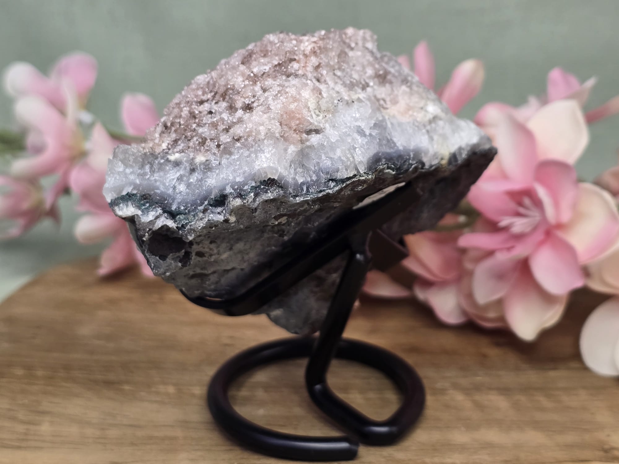 Roze Chalcedoon is een steen met een zeer zachte, moederlijke energie. Het is de steen van “onvoorwaardelijke liefde” en helpt je om meer compassie te hebben, zowel voor jezelf als voor anderen. Het brengt een diepe innerlijke rust en helpt bij het genezen van een gebroken hart. Het stimuleert een positieve kijk op het leven en helpt om wantrouwen of vijandigheid te vervangen door vreugde en openheid. Het is ook een fijne steen voor creativiteit, omdat het je aanmoedigt om vanuit je gevoel te werken.